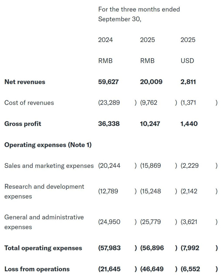 一起教育科技2025年第三季度营收为2000万元(约280万美元),较上年同期的5960万元下降66.4%;